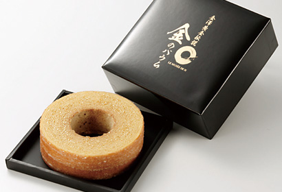 能登のセイアグリー健康卵、金沢産ハチミツを使ったバウムクーヘンに金箔をあしらい絢爛豪華に仕上げました。