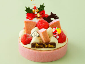 - ふんわりと焼き上げたいちごミルクバウムの中央に芳醇で濃厚な味わいを持つピスタチオのムースを閉じ込めました。真っ赤な苺とコクのあるピスタチオのクリームで華やかなクリスマスカラーに。