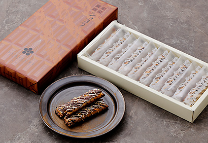 石川県産の梅酒・卵・米粉を使用し、フランスの伝統菓子のサクリスタンをヒントに焼き上げたYUKIZURIに、チョコレートとキャラメルクランチを組み合わせた期間限定商品。